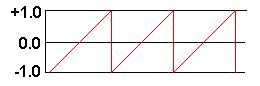The sawtooth oscillator generates a waveform that rises steadily to +1.0, then snaps down to -1.0, then rises up again. This looks like the edge of a saw hence the name. This waveform turns out to be very easy to create mathematically.