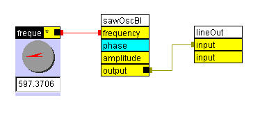 on the "*" and dragging a line to the "frequency" port. The sound will
