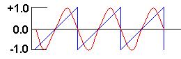 a square wave in red superimposed over a sawtooth wave. Notice that when