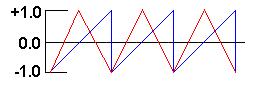 Let's take another look "under the hood" and see how JSyn generates some of the other waveforms. It turns out that the sawtooth wave is the starting point for generating all the other waveforms.Remember, you won't have to use these techniques in your programs. You just create a SquareOscillator, or some other oscillator, and use it. But this page will give you a better understanding of what you are getting.